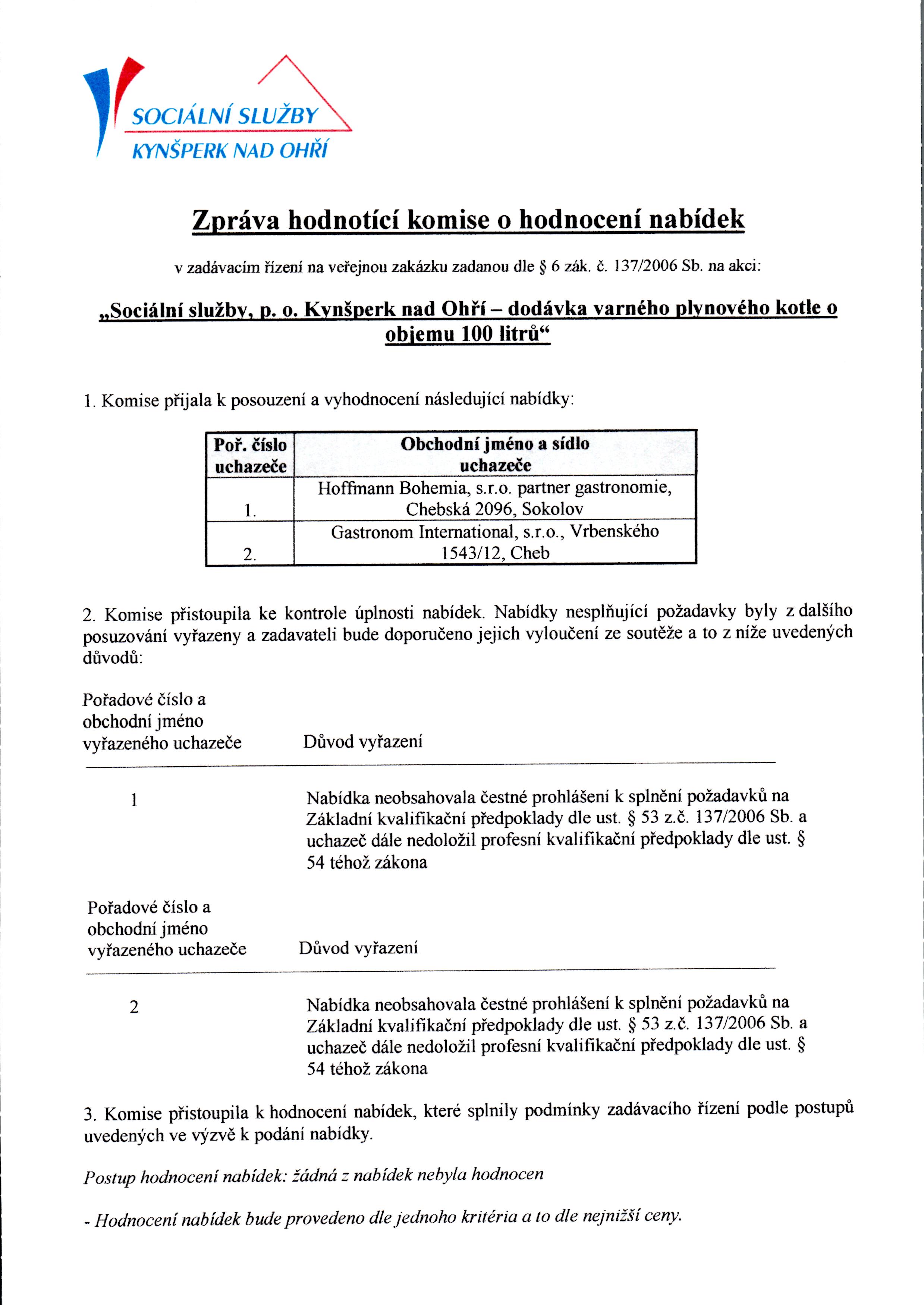 | Název: | Zpráva o hodnocení nabídek, I. část |